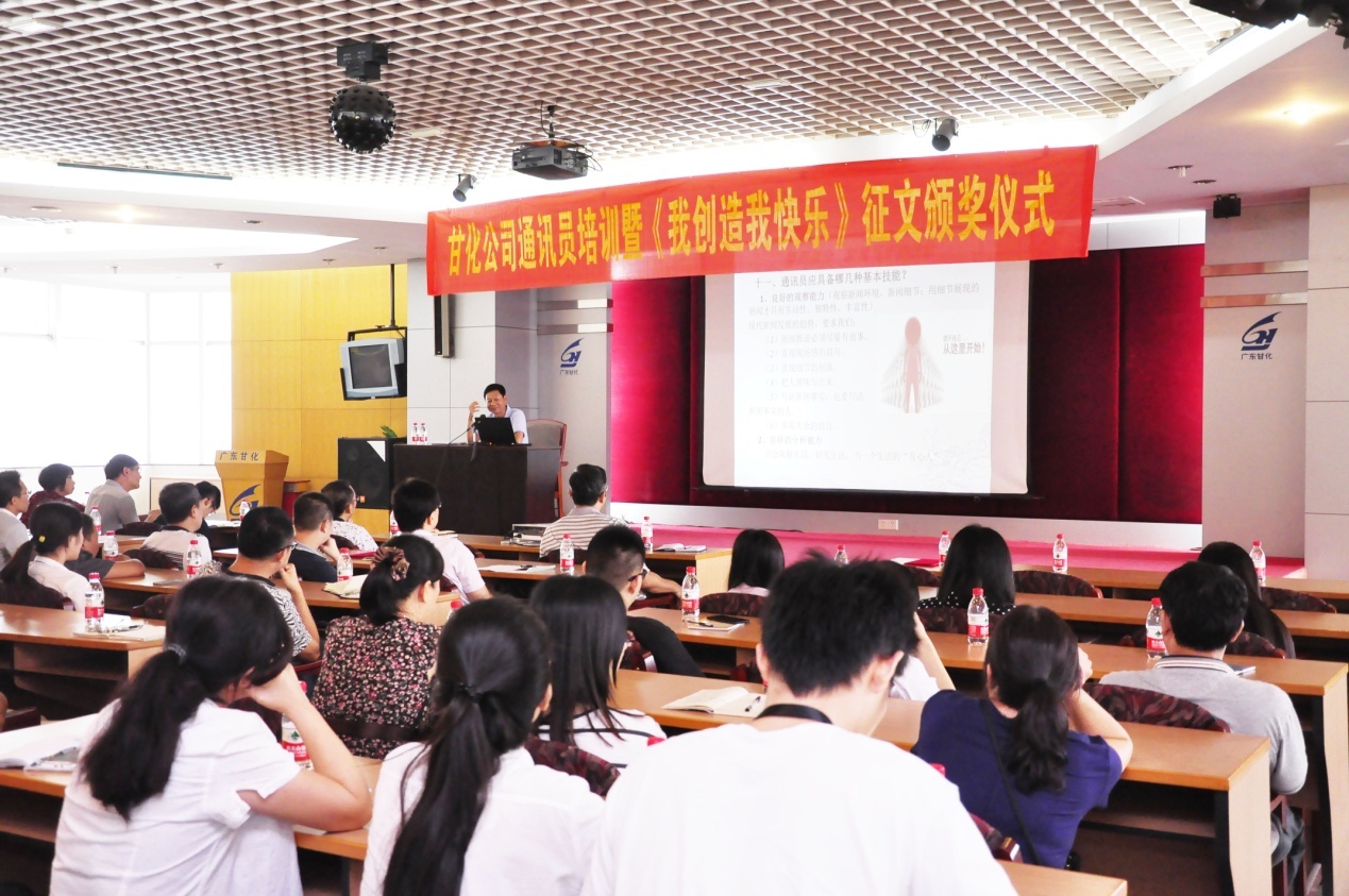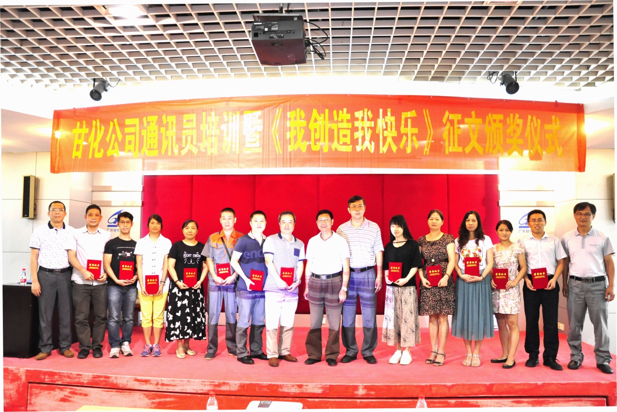 2016年8月25日下午,在甘化大廈17樓會議廳,公司黨委、工會舉辦通訊員培訓(xùn)暨《我創(chuàng)造,我快樂》獲獎?wù)魑念C獎儀式。培訓(xùn)由黨委書記、工會主席方小潮主講。公司黨委委員、各支部委員、工會委員和各單位通訊員等49人參加了會議。