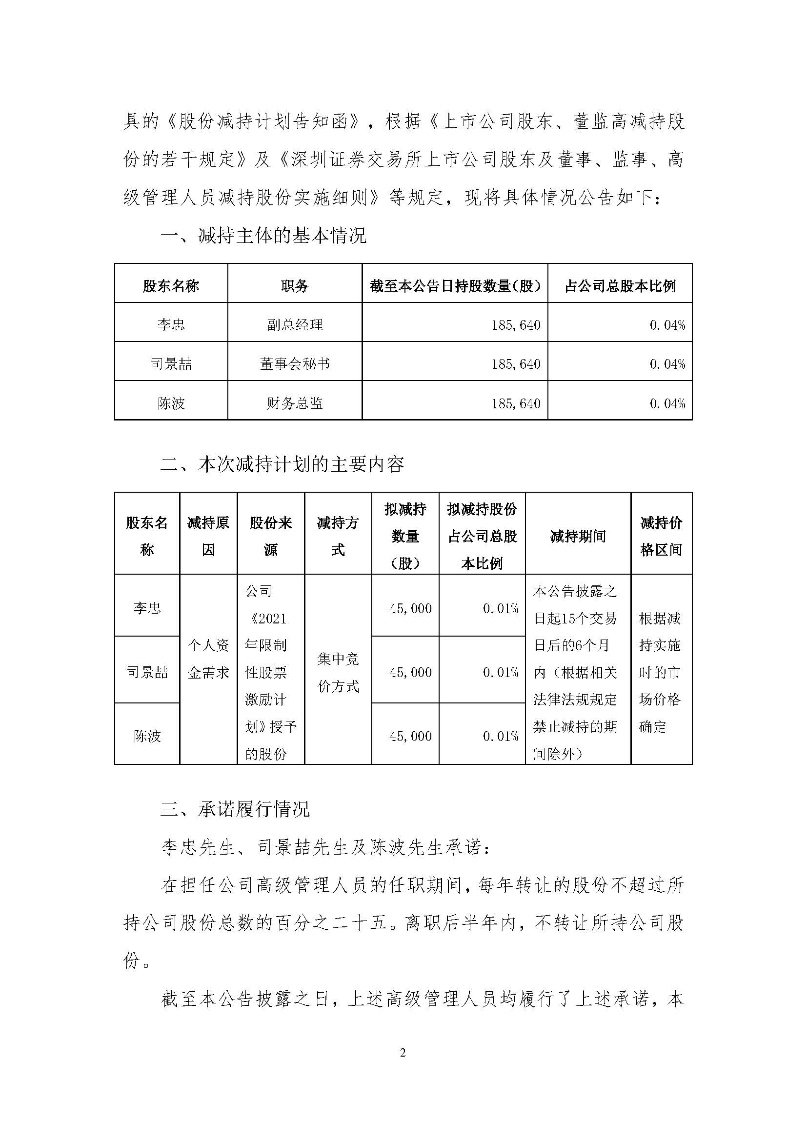 關(guān)于部分高級管理人員減持股份的預(yù)披露公告